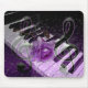 Eine lila Rose auf Klaviertasten mit Musiknoten, die sie umgeben., süße Musik-Klänge, Touch, die alle Herzen.