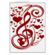 Rote Musiknoten mit roten Herzen und Stars. Musik ist Liebe, Musik macht Freude. Lass live Musik!