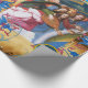 Engel musizieren mit antiken Musikinstrumenten aus einem Gemälde des italienischen Renaissance-Meisters Ridolfo Ghirlandaio, Detail der Krönung der Jungfrau.1483-1561 ,FLorence Italien .Elegantes, klassisches, helles und fröhliches Weihnachtsdesign auf Pergament mit antiken Florentiner Blumenmotiven und einem schimmlischen 3D Saphir und rote Ruby Edelsteine.