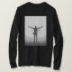 Dieser kreisförmige Aluminium-Schlüsselanhänger zeigt eine auffallende Schwarz-Weiß-Silhouette eines Musikers mit ausgestreckten Armen und einem einzigartigen Glitch-Effekt.