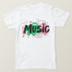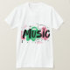 Dieser spielerische und tatkräftige T - Shirt zeigt das Wort "MUSIC" in fett handgeschriebenem Stil. Das Design ist umgeben von einer lebhaften Mischung aus abstrakten Formen, musikalischen Symbolen und Doodles, die eine unterhaltsame und dynamische Atmosphäre schafft. Das Gesamtbild ist jugendlich und ausdrucksvoll, es ist perfekt für Musikfans und alle, die eine Touch der Kreativität schätzen.