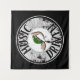 Phantastische, lustige Musikbotschaft mit einem Chamäleon, das sich an einem Notenton hält, der auf einem beschwerlichen Vinyl-Schallplattenhintergrund platziert ist. Für alle Musikliebhaber in unserem Universum.
