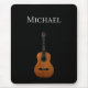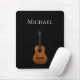 Cool Musikinstrumentenmauspad mit einem akustischen Gitarrenbild-Set auf schwarzem Hintergrund. Mit weißen, individuell anpassbaren Buchstaben können Sie mit Ihrem eigenen Namen personalisieren. Ideal, um eine musikalische Touch zu Ihrem Zuhause-Büro hinzuzufügen.