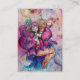 Farbenfrohe, skurrile, lustige, rosa Clownspiele mit einer ausdrucksvollen Eule und fröhlichen musikalischen Noten,Blume,Blätter in lebhaften Rot,Fuchsia,Violett,lila,blau,weiß, Aquarellmalerei von Bulgan Lumini (c)
