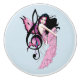 Eine niedliche Fee ganz in Rosa mit einer Musiknote in blauer Umgebung