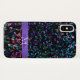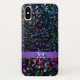 Musiknoten personalisierter iPhone X Fall. Ein schwarzer Telefonkasten mit buntes Blaues, grün, Lavendel, Rosa und Goldmusikalischen Anmerkungen mit einem lila Band. Füllen Sie Ihren Namen und Initiale an der Aufforderung aus, um jede mögliche Weise zu personifizieren und besonders anzufertigen, die Sie mögen. Ein großes Geschenk für Ihren Lieblingsmusiker oder Musikfreund. #music