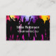 cartes de visite DJ Musique cool moderne conçu avec une foule de gens faisant la fête en silhouette dans l'arrière - plan de ce carte de visite coloré audacieux.