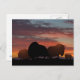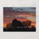 Eine Familie von Musk Ox setzt sich für die Nacht nieder, als hinter ihnen das Feuer der untergehenden Sonne strahlt.