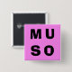 Ein heller und feiner Button-Knopf in Rosa mit schwarzem Text-Design des Wortes 'muso' (Musiker oder Musikliebhaber). Das Statement-Abzeichen ist eine gute Wahl für Musikliebhaber.