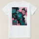 Composición más expresiva y abstracta: rostro femenino con contrastes bicolor, trazos fluidos, manchas y líneas que generan movimiento y profundidad. La flor central actúa como sello botánico de la colección, manteniendo la estética neon teal & pink para una línea uniforme en cojines, sudaderas y pósters.