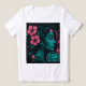 Composición más expresiva y abstracta: rostro femenino con contrastes bicolor, trazos fluidos, manchas y líneas que generan movimiento y profundidad. La flor central actúa como sello botánico de la colección, manteniendo la estética neon teal & pink para una línea uniforme en cojines, sudaderas y pósters.