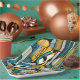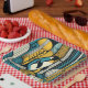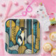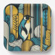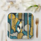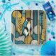 Mustard Yellow Aquamarin Blue Pinguin in Retro Geo Pappteller