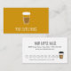 Passen Sie den Namen mit Ihrem Kaffeehaus auf dieser Treuekarte an, ändern Sie den Wortlaut und die Details an Ihre Bedürfnisse. Kaffee-Tasse moderne Illustrationslinie Kunst, einfach, beruflich mit einem einfachen Senf gelben Hintergrund.