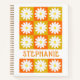 Dieses personalisierte Notebook ist im Retro-Blumendesign mit weißen Farbtönen auf senfarbarbarbenem und orangefarbenem Schachbrettmuster gestaltet. Personalisieren Sie den Namen.