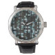 Uhr, Vintage Männeruhr mit schwarzem Lederarmband