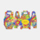 lustige Kunst von EDDA Fröhlich | Objekt: Regenbogen, Blume, Herzen, Friedensschilder, Spirale, Sonne, Schmetterling | Worte: LIEBE, FRIEDEN, FREIHEIT | Thema: 70er - Power der Blume - Liebe nicht Krieg machen