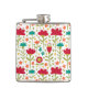 Originelles Blumenmuster mit stilisierten Motiven aus Blume in harmonischen Rot-, Grün-, Orange-, Türkis- und Gelbtönen auf weißem/transparentem Hintergrund.