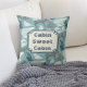 Das ist ein tolles Kissen für die Wochenendhütte! Es zeichnet sich durch ein reizvolles Muster von Winterwaldtieren aus, darunter ein Bär, Fuchs, Hirsch, Kaninchen, Eichhörnchen und Vögel. Manche tragen Wintersüßer! Das Muster wird auf einem mittleren aquamarinen blauen Hintergrund platziert. Auf einer Seite des Kissens befindet sich ein passendes, aquamarines Banner mit dem Text "Cabin Sweet Cabin". Der Text kann leicht auf alles geändert werden, was man möchte. Niedlich!