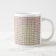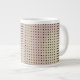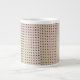 Das Originalmuster von HomeWare auf dieser riesigen Tasse ist genau das, was man es nennt, ein Rastermuster, das aus einem Originalfoto auf der Rückseite eines Stuhls gemacht wurde. Dunkelgraue und braune quadratische Punkte in Reihen bilden das Raster. Die Reihen verlaufen leicht wie der Stuhl. Die kleinen quadratischen Punkte sind nach oben nah Löcher mit abgerundeten Ecken und eine Schattendimension um die oberen und rechten Ränder. Die Farben des Stuhlkörpers sind abgestufte Töne aus der Natur, blasses Salbei, das in blasslila, dann weich, sandig braun, so, als ob sie angestrichen worden wären. Dieses abstrakte Design mit seinem raffinierten Farbschema hat einen sehr modernen Look.