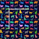 Muster farbenfroher Katzen. Navy Blue Background Stoff