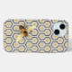 Honigbiene, die über ein schlichtes, sechseckiges Wabengitter in Mod-Farben schwingt, um einen Retro-Look für einen Imker oder einen Bienenzeller oder ein iPad-Handy zu geben. Einige Designs in der Kollektion haben nur das Wabengitter ohne Biene.