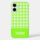 Dieses stilvolle iPhone 16 Gehäuse zeichnet sich durch ein fett-monogrammatisches Design aus, das einem auffallend grünen und weißen Hahnentrittmuster gegenübersteht. Perfekt für das Hinzufügen einer personalisierten Touch und gleichzeitig für einen dauerhaften Schutz Ihres Gerätes.