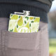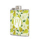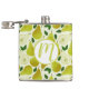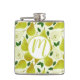 Ein Muster aus lebhaften grünen Birnen in Gelb- und Grüntönen mit hellgrünen Blätter. Einige der Birnen sind halbiert, um die saftigen Innenwände und Samen zu zeigen.