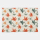 Diese Abbildung zeigt ein charmantes, minimalistisches Muster von Herbstblättern in lebhaften Rot-, Orange- und Farbtönen. Die Blätter verteilen sich auf einen zarten, beigen Hintergrund, mit zarten Spritzern mit schwarzer Tinte, die eine Touch von Textur und künstlerischem Flair hinzufügen. Das Design spiegelt das Wesen des Herbstes wider und ruft ein Gefühl von Wärme und natürlicher Schönheit hervor.