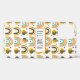 Ein Telefongehäuse mit niedlichem gemustertem Hintergrund. Weiße Bienen und Regenbogen mit kleinen Herzen und Sternen verstreut herum. Schön und angenehm. Ein Rechteck, das oben mit Ihrem personalisierten Namen übereinander liegt.