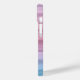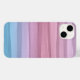 Ein hübsches iPhone 14 Gehäuse mit einem pastellfarbenen Wasserfarbmuster mit Linien und Streifen in Aquablau, Lavendel lila und hellrosa.