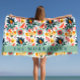 Das Badetuch ist genügend gross für eine Erwachsene Person. Es fühlt sich weich an. Über die Saugfähigkeit bei Nässe kann ich noch nichts sagen aber es ist kein "dickes" Badetuch. Der Druck ist toll, die Farben sind etwas weniger kräftig als auf dem Bild, was aber keinesfalls unschön wäre.