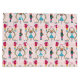 Whimsical und festliche Weihnachtsgeschenk-Tasche mit handgezeichneter Abbildung von Katze, Hund und Maus als Nutcracker Ballett-Figuren. Der Hintergrund ist rosa.