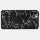 Zeitgenössische Streifen aus weißem Marmor Textur Streifen Muster auf schwarz. Mit Raum zum Anpassen oder Personalisieren mit einem Namen, Monogramm oder Initialen Ihrer Wahl. Schönes, modernes und cooles Cover für den Trend-geschickten und kunstliebenden angesagten Trendsetter, künstlerischer Motif-Liebhaber, der will, ihr Handy vor Staub und Schmutz, Abnutzung und Tränen zu schützen. Dieses Design ist in Apple iPhone 10 oder X, XR, XS, 11, 12, und 13 Mini, 14, und 15 Plus und Pro Max Handy Hüllen. Zeigen Sie Ihren Stil, sehen Sie in der Mode und fühlen Sie sich stilvoll mit einem einzigartigen Design auf einem mobilen Zubehör Ihrer Wahl.