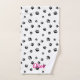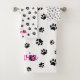 Zeigen Sie Ihre Liebe für Tiere mit diesem niedlichen und schwarzen Pfoten drucken gemusterten Badehandtuch-Set! Mein Tierpaw-Druckdesign beinhaltet Transparenz, damit Sie die Farbe des weißen Hintergrunds an Ihren Favoriten anpassen können. Vorlagen für Ihren Namen gibt es in heißen rosa Texten, die Sie auch ändern können, um Ihre Lieblingsfarbe und Schriftart Stil.