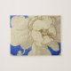 Vintage Illustration florale Tapete mit einer blühenden Garten-Blume in der Frühjahrssaison. Weiße Blume auf blauem Hintergrund.