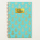 Stilvolle Tages-/Monatsplaner in Türkis mit goldenem Ananas-Muster. Die Grafik einer goldenen Tonplakette, auf der Vorderseite des Planers, hat türkisfarbenen, benutzerdefinierten Text bereit, um zu personalisieren.