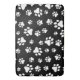 Niedliches, lustiges und hübsches Muster mit weißen Pfoten auf schwarzem Hintergrund. Modernes und trendiges Geschenk, perfekt für den Hundeliebhaber in Ihrem Leben.