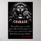 Entfesselter Mut wird in diesem kontrastreichen Schwarz-Weiß-Bild dargestellt. Ein heftiger Löwe brüllt, ein roher Power zeigt sich, während ein kleiner Tigerjunge spielerisch auf den Rücken klettert. Der dunkle Hintergrund betont die Themen. "Courage" ist in fett gedrucktem, elegantem rotem Schriftart in einem stilisierten Textfeld unten geschrieben. Nelson Mandelas Zitat verstärkt das Thema: "Ich habe gelernt, dass Mut nicht die Abwesenheit von Angst war, sondern der Triumph darüber. Der tapfere Mann ist nicht der, der keine Angst empfindet, sondern der, der diese Angst erobert." Das Bild inspiriere Stärke und Tapferkeit.