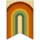 Retro Regenbogendesign. Regenbogenschichten in gedämpften Farben, orange, rot und grün. Groovy Retro Regenbogengeschenke, Wohngestaltung. Retro Party Regenbogen siebziger bunte Fahnen.