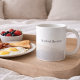 Featuring a quiet sky theme, this design shows a smooth mist gray to ivory gradient rising upward, paired with clean sans serif text reading “Hushed Horizon.” The soft fade suits desks, kitchen shelves, or workspaces where neutral tones support daily coffee or tea routines with a calm, modern look.