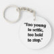 Ein motivierendes, minimalistisches Zitat-Design, das lautet: "Zu jung, um sich niederzulassen, zu mutig, um aufzuhören." Dieses Bild ist perfekt für alle, die nach ihren Träumen streben, ihre Jugend annehmen und sich weigern, Kompromisse bei ihren Zielen einzugehen. Teilen Sie es als Erinnerung, mutig bleibe, behalten, nach vorn zu drängen, und nie mit weniger zufrieden, als Sie verdienen.