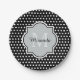 Mutige Schwarzweiss-Tupfen Monogramm und Name Pappteller