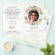 Ein folkloristisches Beerdigungsprogramm mit einer Fülle von rosa Rosengärtnern, die das Leben feiern. Die Vorderseite ist so konzipiert, dass sie beidseitig bedruckt werden kann, zeigt den Namen und ein Lieblingsfoto in den ovalen Rahmen des Goldenen Effekts, während das Innere mit der Reihenfolge des Dienstes oder was auch immer Sie wünschen bearbeitet werden kann. In einer schwierigen Zeit eignet sich dieses schöne und graziöse Blumendesign mit goldenen Rändern für eine Feier des Lebensdienstes, eine religiöse Kirchendenkmal oder eine humanistische Zeremonie. Der Goldfolieneffekt der IMITATE ist bedruckt und NICHT metallisch.