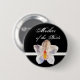 Mutter des Bride Wedding ID Abzeichen Button. Weiße Orchidee auf schwarzem Hintergrund fotografiert und von TDSwhite unter www.ArtisticPostage.com entworfen.