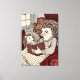Eine detaillierte Darstellung zeigt einen großen Igel, wahrscheinlich eine Mutter, der auf einem Stuhl sitzt und einem kleineren Igel, wahrscheinlich seinem Kind, ein Buch vorliest. Die Mutter trägt ein weißes Kleid mit einem weißen Kragen, während das Kind mit einem braunen Hemd mit einem weißen Kragen gekleidet ist. Das Buch ist offen und hat eine dunkelrote Decke. Die Szene wird von einer Lampe mit einem weißen Lampenschirm beleuchtet, der ein warmes Licht auf die Igel wirft.