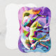 Brillante, geometrische Pferde stehen vor einem wirbelnden, psychedelischen Hintergrund. Lila, rosa und grüne Farbtöne harmonieren mit abstrakten Farbtönen. Digitale Kunstfotografie CS5