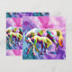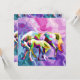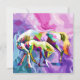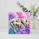 Brillante, geometrische Pferde stehen vor einem wirbelnden, psychedelischen Hintergrund. Lila, rosa und grüne Farbtöne harmonieren mit abstrakten Farbtönen. Digitale Kunstfotografie CS5