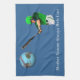 Eine Frau, die Mutter Natur repräsentiert, trifft einen Baseball-ähnlichen Globus der Erde. Es erscheint auch Text mit dem Text "Mother Nature Always Bats Last". Veränderungen in der Umwelt können unerwartete und unerwünschte Folgen haben. Wählen Sie Ihre eigene Hintergrundfarbe aus.