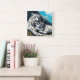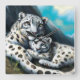 Mutter Schneeleopard und Cub in den Bergen Quadratische Wanduhr