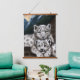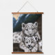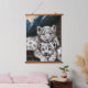 Mutter Schneeleopard und Cub in den Bergen Wandteppich Mit Holzrahmen